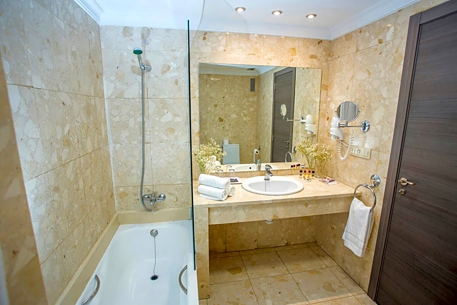 Offering free toiletries, this family room includes a private bathroom with a bath, a shower and a bidet. The family room offers air conditioning, a mini-bar, a wardrobe, a safe deposit box and a flat-screen TV with satellite channels. The unit offers 3 beds.