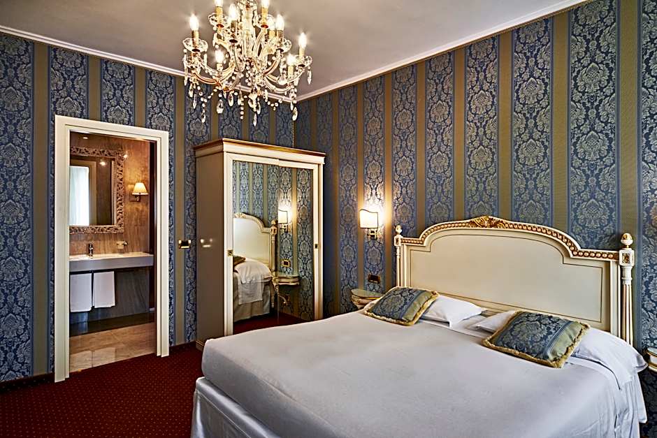 Deluxe Double Canal View is 258 square feet and includes a queen-size bed 150-154 width plus satellite tv , hairdryer, and safe.