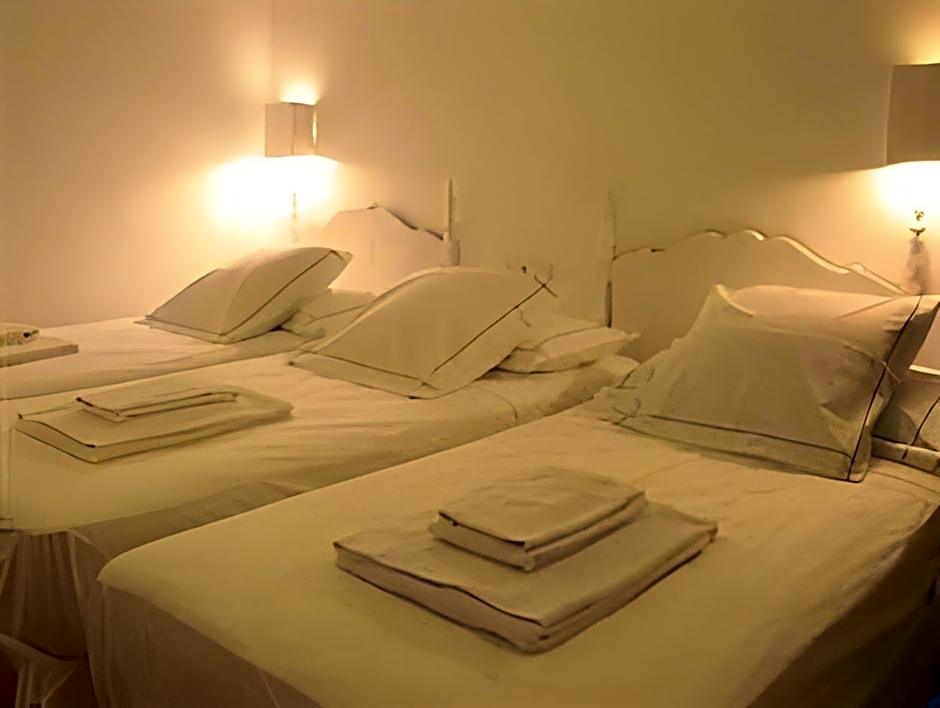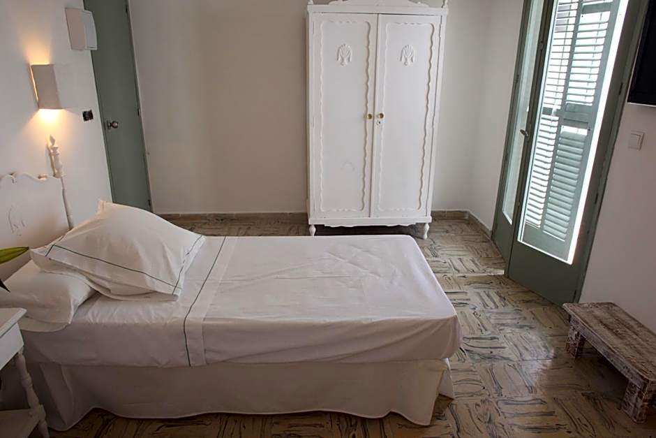Room choices cater to everything from solo travelers to small groups. Examples include a Double Room with Private Bathroom (216 sq ft) for two adults and a child, and a Quadruple Room with Sea View for two adults. A Superior room with Balcony and Shared Bathroom also measures 216 sq ft and accommodates 2 adults and 1 child. For twin-bed configurations, options include a Room with 3 Twin beds and Shared Bathroom (216 sq ft), a Room with 2 Twin beds plus Balcony (216 sq ft), and a compact Room with 1 Twin bed (130 sq ft).