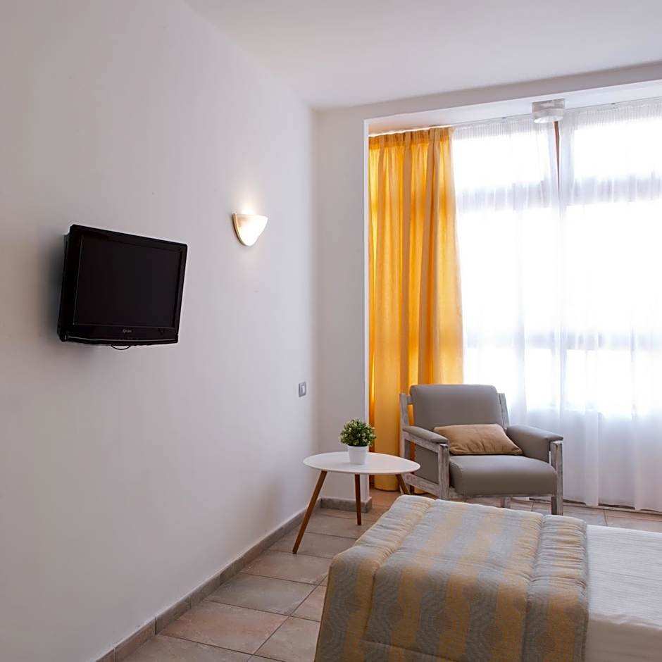 The ApartHotel Idafe offers Studio Apartments with 301 sqft of space, accommodating 3 adults, and equipped with 1 Sofa Bed and 2 Twin beds. Smoking is not allowed in these apartments. The hotel also provides Superior Twin Rooms of the same size with 2 Twin beds, suitable for up to 2 adults and non-smoking.