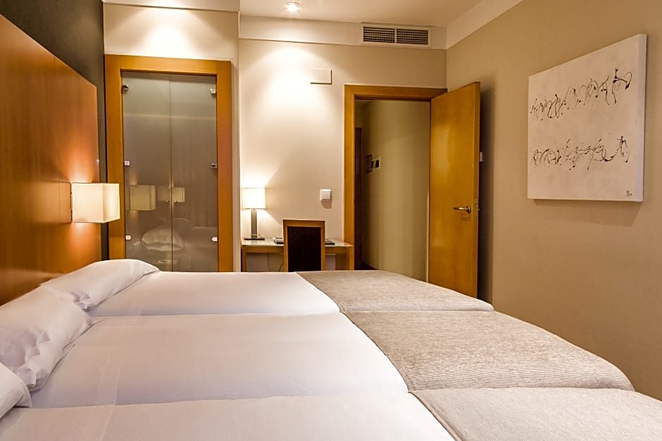 The Zenit Logroño hotel offers Triple Rooms that can accommodate 2 adults and 1 child, with 4 twin beds and 1 double bed. There are also Double or Twin Rooms for 1-2 people, with 1 double bed and 2 twin beds. Additionally, there are Triple Rooms available for 3 adults and 1 child, with 3 twin beds. Smoking is not allowed in any of these rooms.