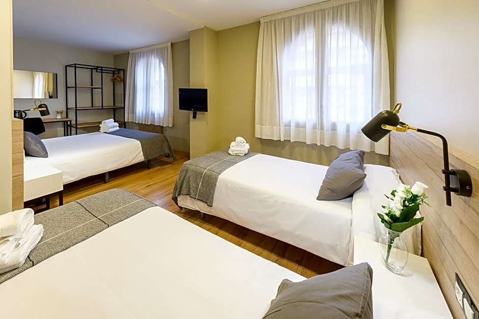 Choose from a variety of well-appointed rooms at Hotel Torres Manlleu. Whether you're a solo traveler or a small group, there is a room type to suit your needs. The Single Room offers a cozy space with a twin bed, perfect for solo adventurers. If you're traveling with family or friends, the Classic Quadruple Room provides ample space with two twin beds and a double bed, accommodating up to four adults and two children. For a smaller group, the Triple Room offers three twin beds, accommodating two adults and one child. Couples or friends can opt for the Double or Twin Room, with the choice of either twin beds or a double bed. Whichever room you choose, you'll enjoy a comfortable and restful stay at Hotel Torres Manlleu.