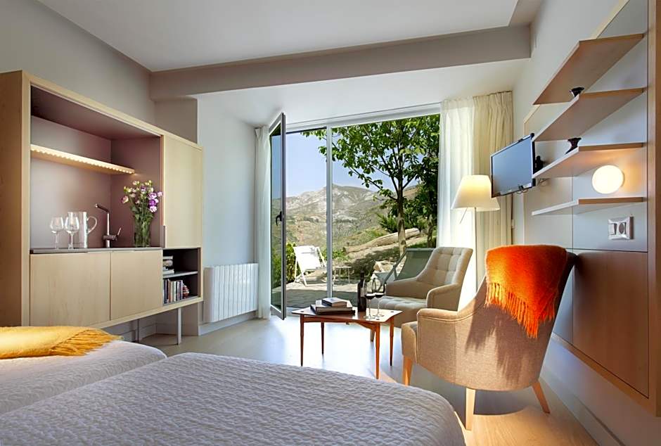 This stylish room offers a window with wonderful views of the valley and the surrounding mountains. It features fine cotton bed linen, air conditioning and central heating and a private bathroom with a range of toiletries.