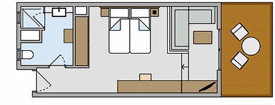 Offering free toiletries and bathrobes, this twin room includes a private bathroom with a shower and a hairdryer. This twin room has a mini-bar, a tea and coffee maker, a flat-screen TV with satellite channels and a terrace. The unit has 3 beds.