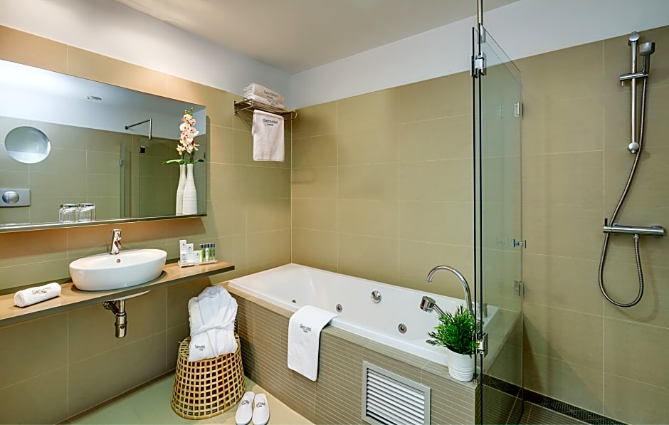 The hotel offers a variety of room types including Triple Rooms, Executive Double Rooms, Double Rooms, and Junior Suites. None of the rooms allow smoking and have an occupancy of 2 adults and 1 child, except for the Triple Room which can accommodate 3 adults. The beds in the rooms range from twin beds to double beds, with the Junior Suite offering a sofa bed and a king-size bed.
