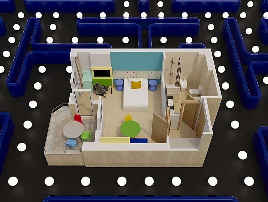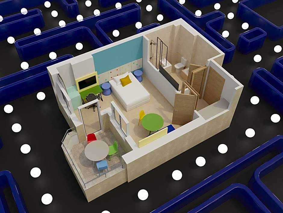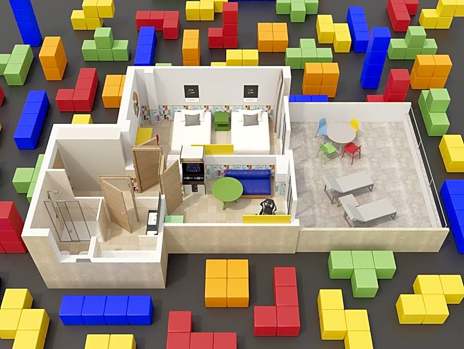 Junior Suite Game Stars Masters 2 Ad + 2 Ch is 269 square feet and includes 2 single beds 80-130 width.