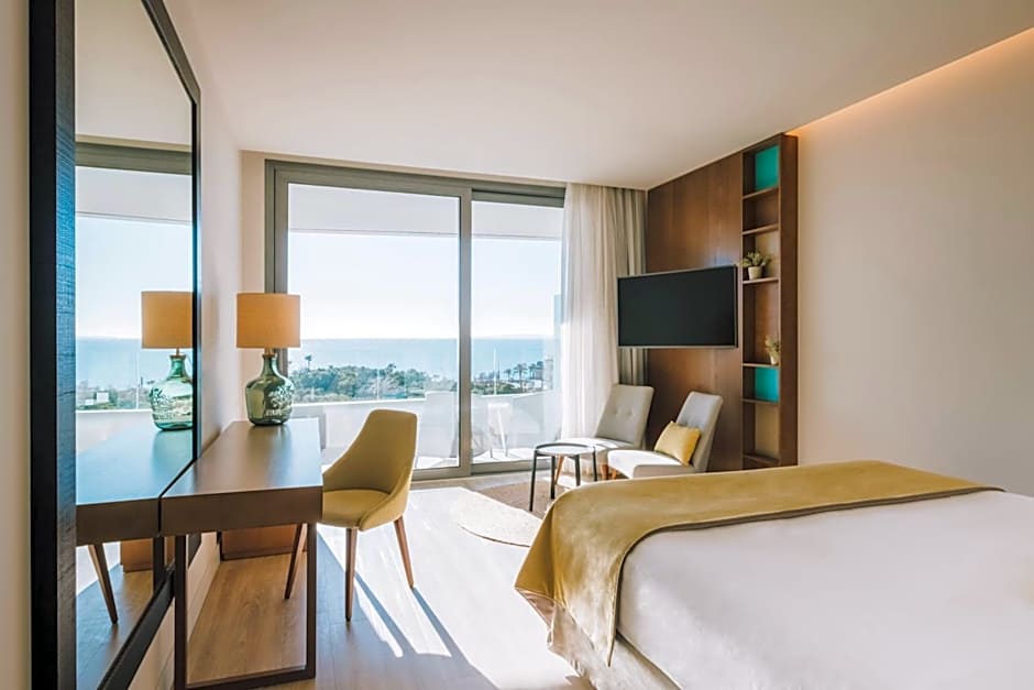 Sea View Double is 291 square feet and includes either a double bed 131-150 width or 2 single beds 80-130 width plus balcony, terrace, desk, satellite tv , hairdryer, safe, bathrobes, and slippers and is Wheelchair-accessible.