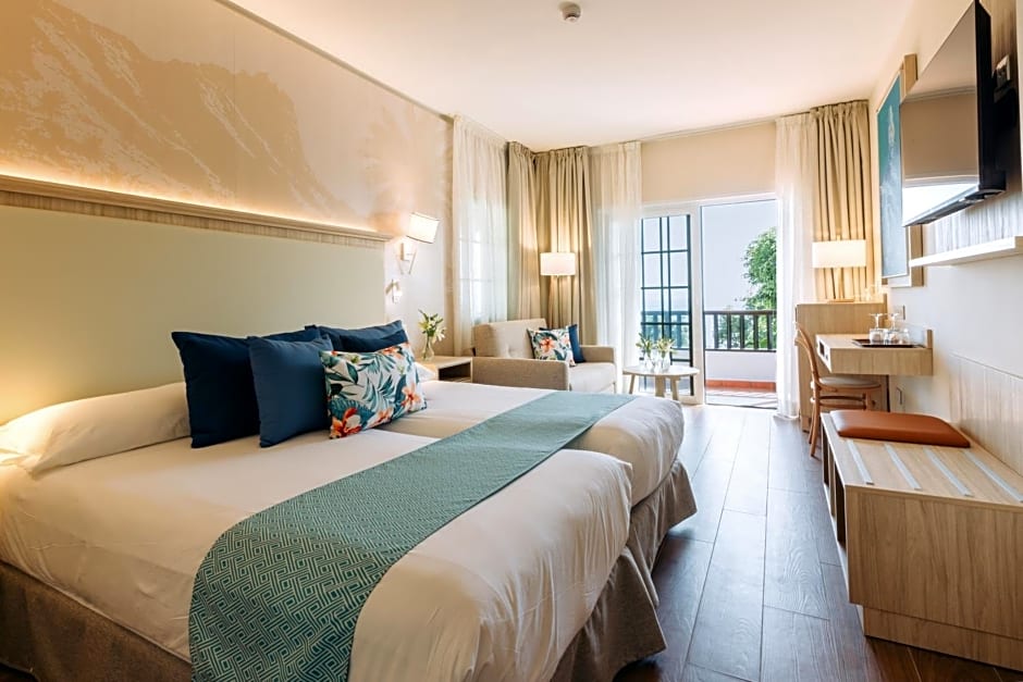 Hotel Jardín Tecina offers various room types including Superior, Comfort, and Standard Double or Twin rooms, with the option of accommodating 2 adults and 1 child or 3 adults and 1 child. Smoking is not allowed in any of these rooms, which feature 2 twin beds and have a room size of 344 sqft.