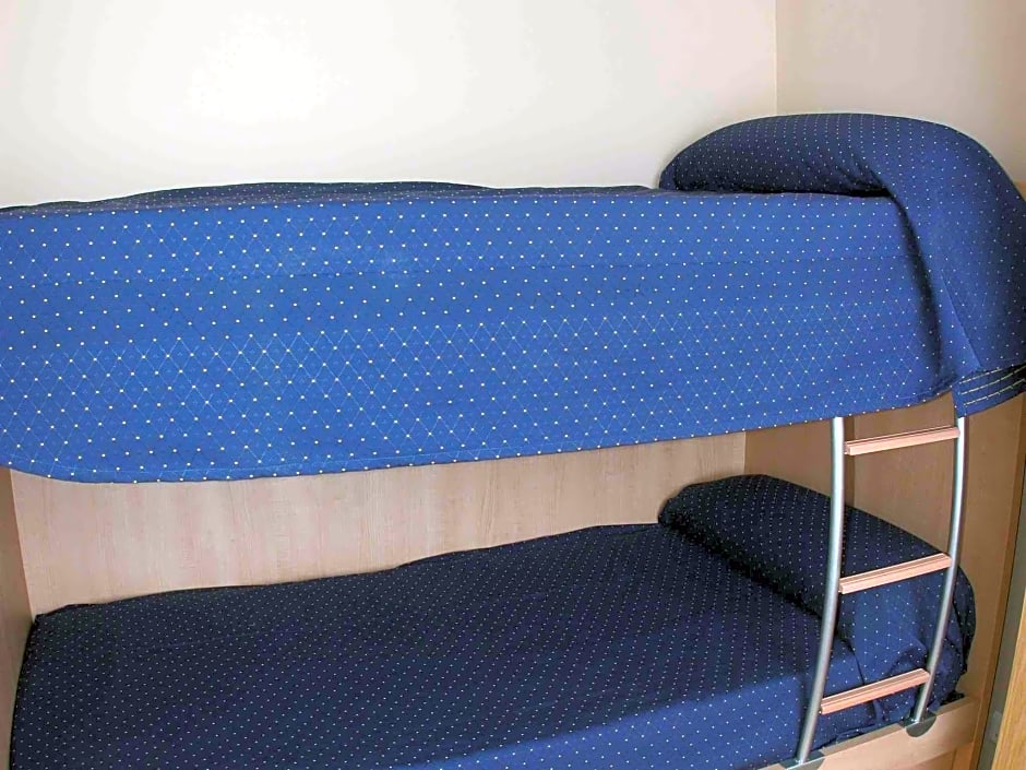 This air-conditioned room offers 2 separated areas, 1 with 2 single beds joined together, and 1 with 3 bunk beds. There is a TV, a desk and a mini fridge.