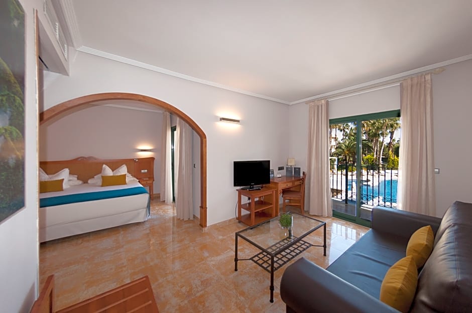 Hotel La Laguna Spa & Golf offers various types of rooms including Junior Suites, Premium Suites with Hot Tub, Double Rooms with Terrace, Twin Rooms, Twin Rooms with Pool View, Deluxe Suites with Spa Bath, and Junior Suites with Pool View. These rooms range in size from 248 sqft to 398 sqft and do not allow smoking. The occupancy of the rooms varies from accommodating 2 adults to 3 adults and 1 child. The bed sizes include Twin beds, King size beds, and Sofa beds.