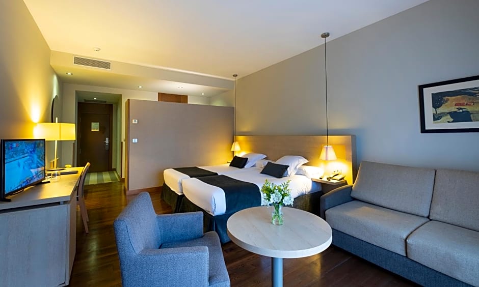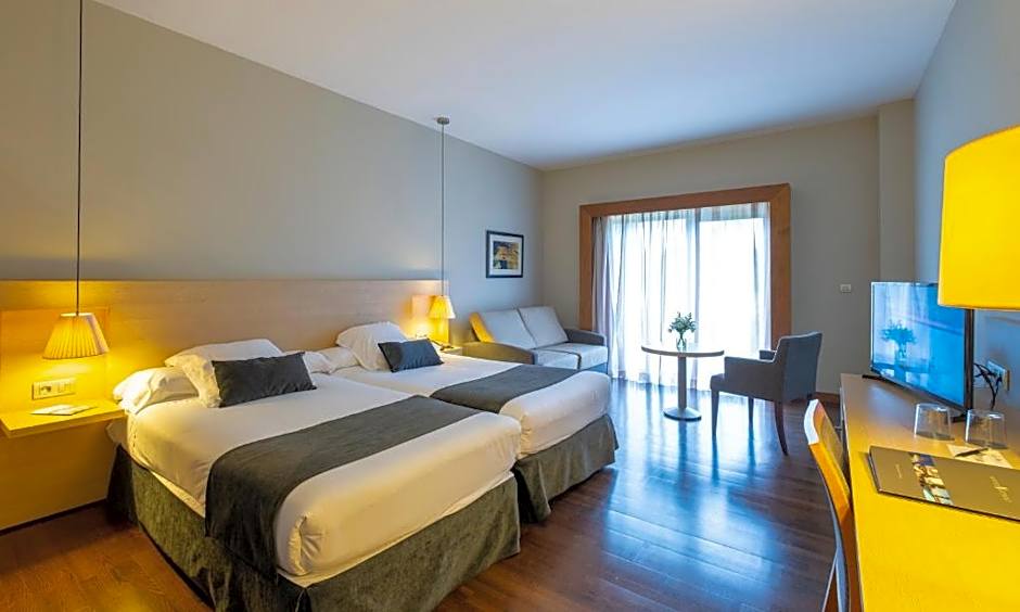 With a range of room types available, Hotel Spa Attica21 Vilalba caters to every traveler's needs. From the spacious King Double Room to the Double or Twin Room with Spa Access, guests can choose the perfect accommodation for a relaxing stay. For those traveling in groups or seeking additional space, the Twin Room with Extra Bed and the Double or Twin Room with Extra Bed and Spa offer comfortable and convenient options. All rooms boast a size of 377 sqft, ensuring ample space for guests to unwind and enjoy their stay.