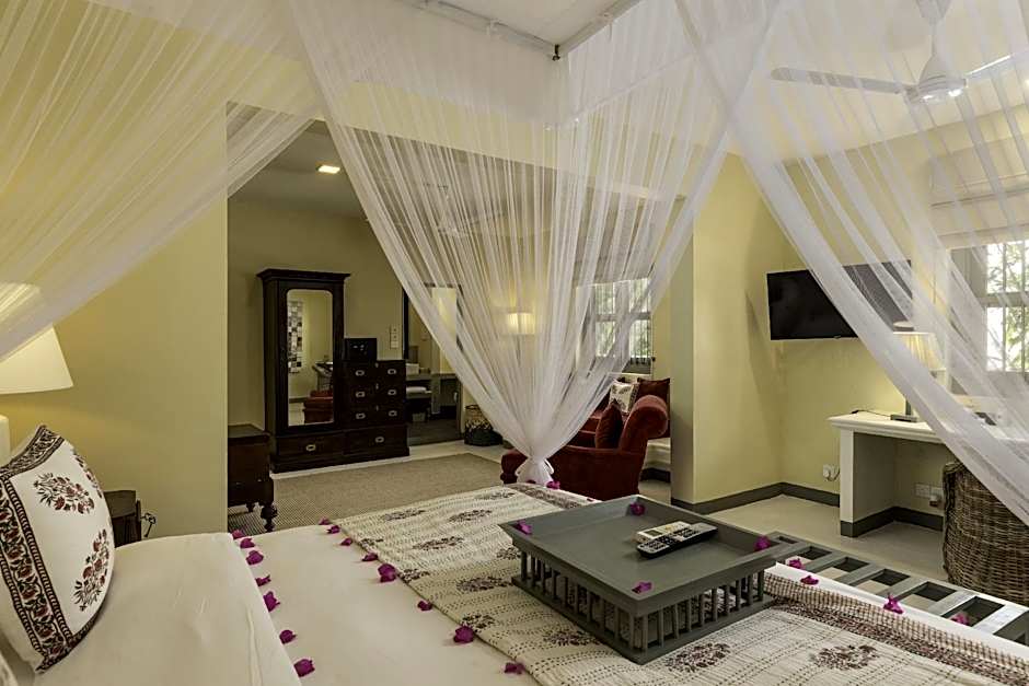 The Villa Bentota offers a variety of rooms including Superior Queen rooms and Standard rooms that accommodate 2 adults on a double bed. Suites such as the Superior Suite, Executive Suite, and Extended Executive Suite offer larger room sizes and also accommodate 2 adults, but with the option for additional guests. The Two Bed Room Suite with Shared Bathroom accommodates 2 adults and 1 child on two queen size beds. There are also larger suites like the Extended Superior Suite that can accommodate 2 adults and 2 children. All rooms are non-smoking.