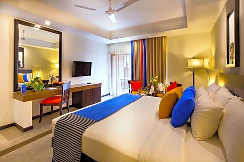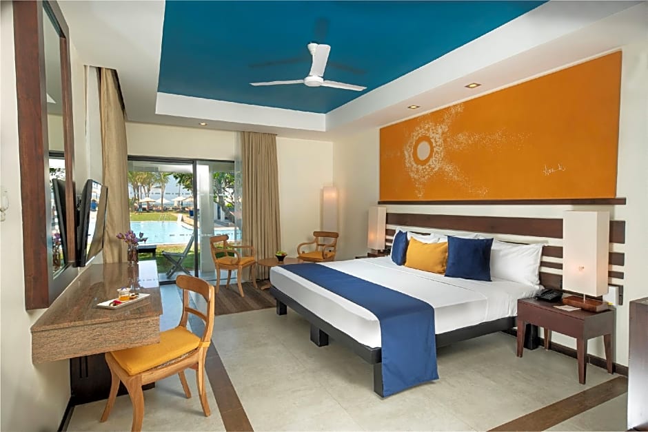 Rooms are equipped with air conditioning, balconies or patios, and garden or beach views with en suite baths featuring free toiletries and a bidet. The grounds invite relaxation with a sun deck and beach umbrellas, plus garden spaces, terraces, and kid-friendly options like a kids' pool, playground, and kid-friendly buffet. Address: Kammala South Waikkal, Negombo.