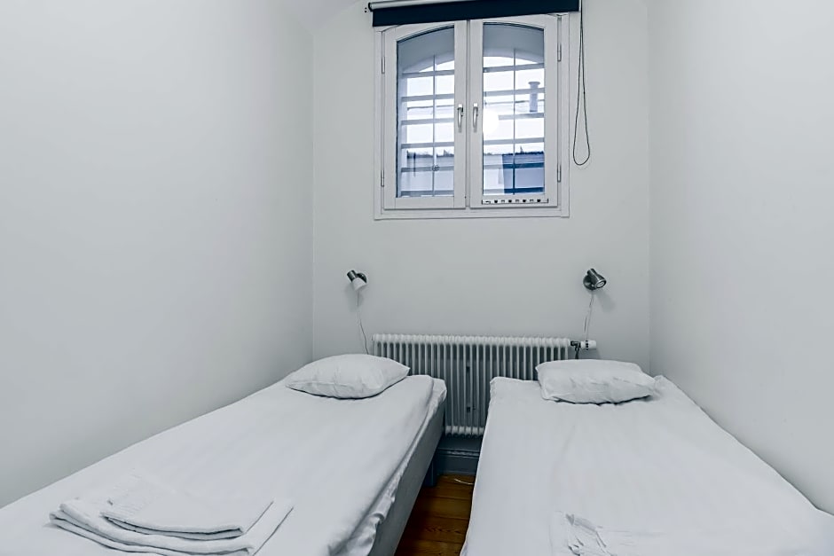 At Fängelset Hotell & Konferens, the hotel offers a variety of room options including single rooms, double or twin rooms, quadruple rooms, family rooms, and suites. Smoking is not allowed in any of the rooms. Single rooms accommodate one adult, double or twin rooms accommodate two adults and one child, quadruple rooms and suites accommodate four adults and two children, and family rooms accommodate five adults and two children. The bed sizes range from twin beds to bunk beds and queen-size beds.