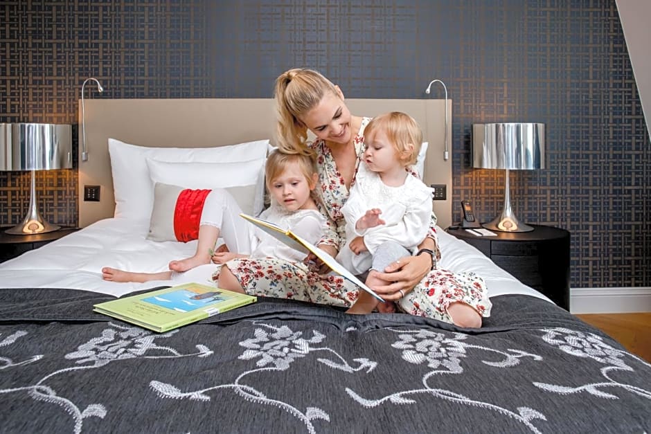 Spacious suites offering separate living, sleeping, and dining areas, with stunning views over Bern’s city center. Each suite features a bathroom with a rain shower, a TV and a separate Japanese bathtub. The living room offers a comfortable seating area, and a fully equipped kitchenette ensures convenience. Additional amenities include a mini-bar, a Nespresso coffee machine, and a state-of-the-art entertainment system. A business package (high-speed internet access, movie selection, and unlimited national phone calls) is included in the rate.