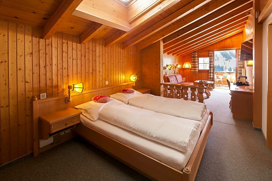 A range of room configurations is available, including Standard, Superior, Suite, and Apartment options. Some layouts feature balconies or terraces and mountain views to pair with the alpine surroundings.