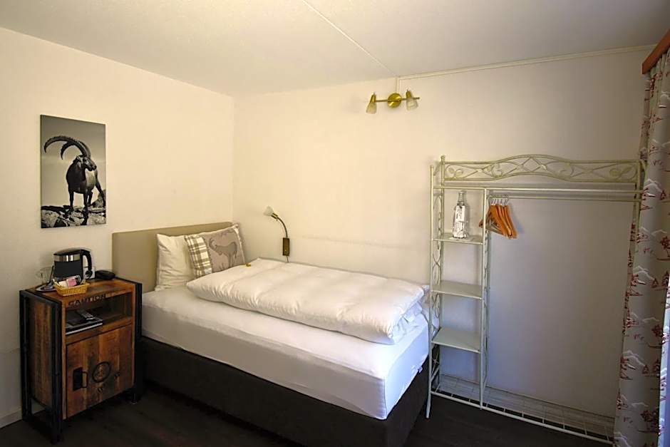 Cozy and quiet south-facing room with a sunny balcony offering views of the Eiger North Face.