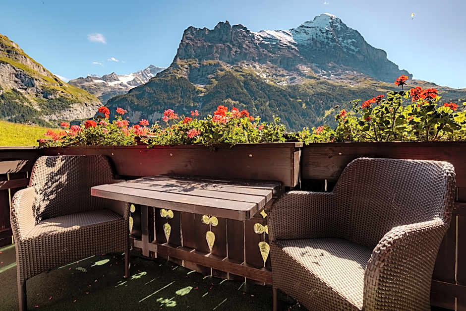 With a combined sleeping and living room, large balcony/terrace and Eiger mountain views. Some with corner bathtub.