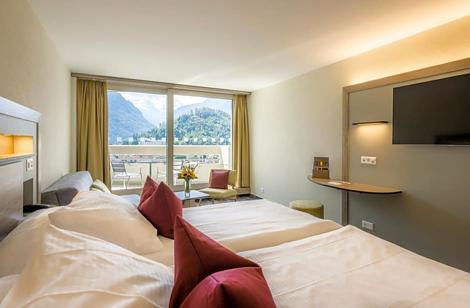 The deluxe rooms are located on the 7th to 14th floor and offer a unique view of the surrounding mountains, Interlaken and of course the famous Jungfrau.