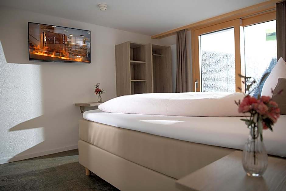 The double room is located in the front of the main building (floor 1-3) and has a mountain view. The room provides a balcony, a safe deposit box, heating, and a private bathroom featuring a shower and/or bathtub. This double room features a flat-screen TV with cable channels. The room offers one double bed and a sofa bed for up to two extra people can be booked.