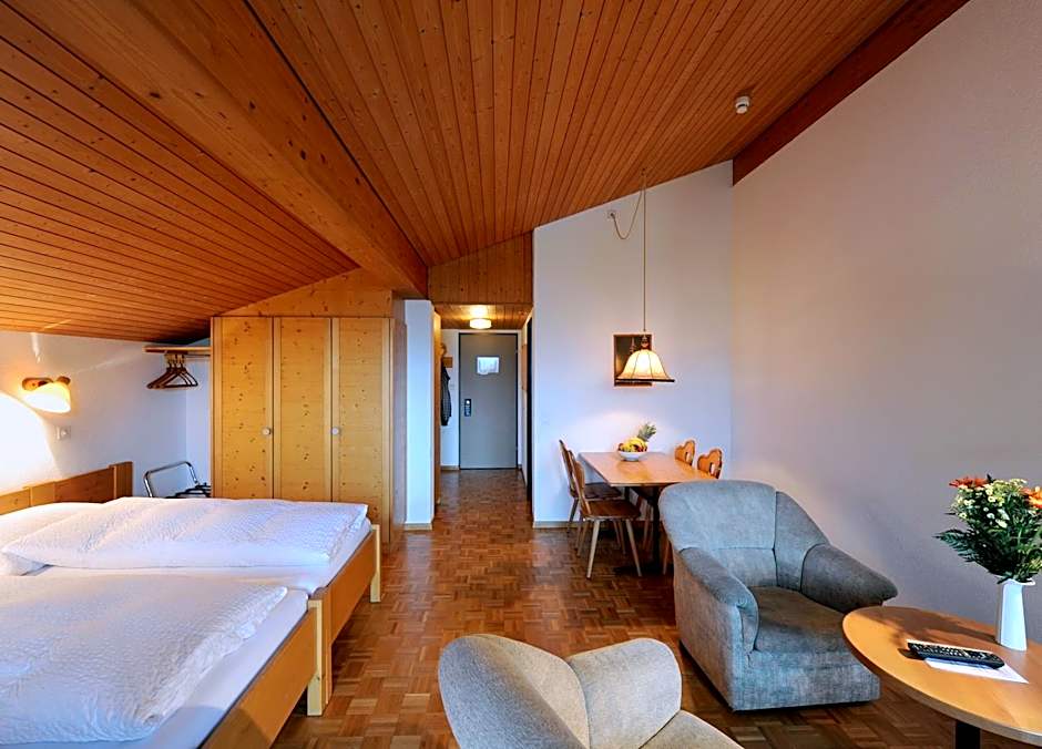 Choose from a selection of room types at Hotel Krone Lenk to suit your needs. Whether you're traveling solo, as a couple, or with family and friends, the cozy non-smoking rooms with kitchen facilities provide a comfortable and convenient space to call your own during your stay. Additionally, the hotel's pet-friendly policy means that your furry companions can join you in your accommodations for a truly memorable vacation experience.
