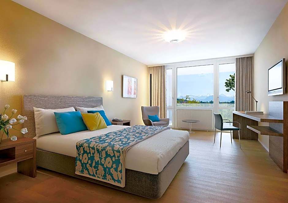 Unwind in the comfort of your beautifully appointed room at Kurhotel Sonnmatt Luzern. Whether you choose a Suite with a balcony, a Standard room with a breathtaking lake view, a cozy Comfort room, a Standard room in the Annex Building, or a Panorama room, each accommodation is designed to provide a relaxing retreat after a day of exploration. With beds accommodating 2 adults and 1 child, you can rest assured that your family's comfort is a top priority at this welcoming hotel in Luzern.