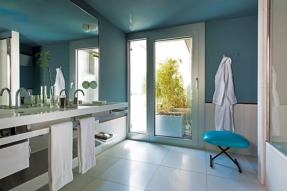 This Suite comes with a patio garden and views of the adjacent park. It features a flat-screen TV, a mini-fridge, coffee machine and hot water kettle and it features a painted ceiling.