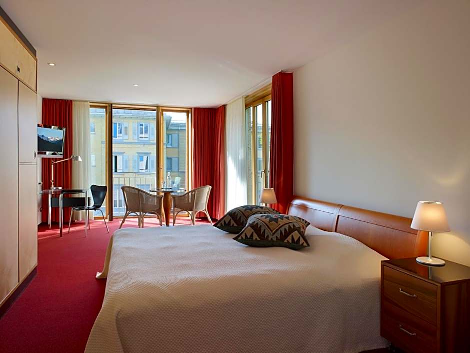 Private parking is available on site (reservation is not needed) and costs CHF 18 per day.