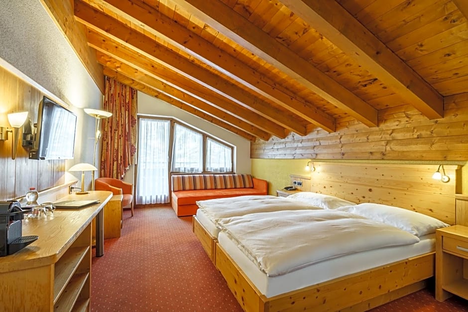 Room with Matterhorn views, a balcony or shared ground floor terrace, a TV, a safe, a sofa bed, and a bathroom with a hairdryer. Some of the rooms are located in the attic and have sloping ceilings. Please note that the room rate is based on 2 guests. Maximum occupancy is 3 guests (see Extra Bed Rates).