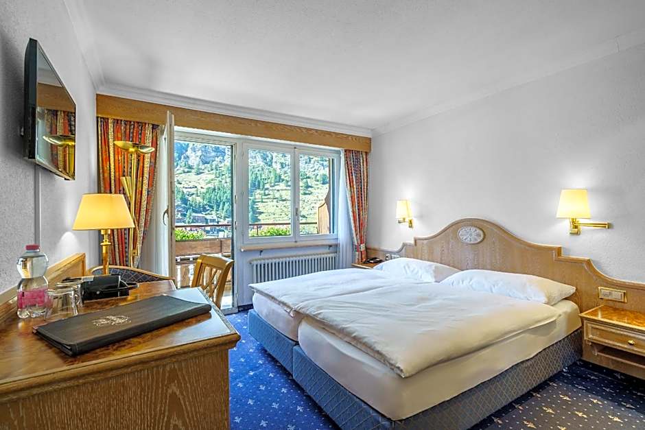 Room with Matterhorn views, a balcony or shared ground floor terrace, a TV, a safe, and a bathroom with a hairdryer. Please note that extra beds are not available in this room type.