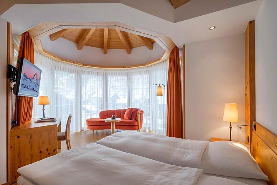 This spacious room provides panoramic views of the Matterhorn Mountain and is decorated in Alpine style with wood and stone features. It comes with a flat-screen cable TV, a telephone, a safety deposit box and a hairdryer. These rooms have a balcony, a terrace or a bay window. Free WiFi is available.