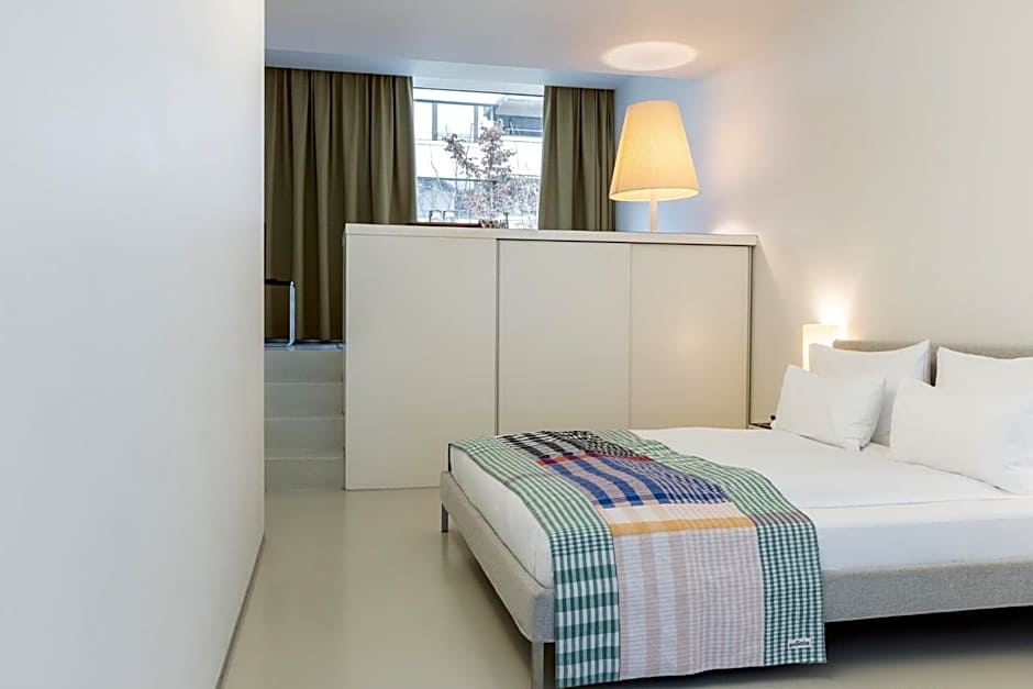 This small room faces the quiet courtyard of the hotel which is right next to a birch grove. All rooms are equipped with wireless internet, a flat-screen TV, a radio and a safe. Further amenities include a yoga mat, mineral water and tea. The bathroom comes with shower, hairdryer, and Soeder care products from Zürich.