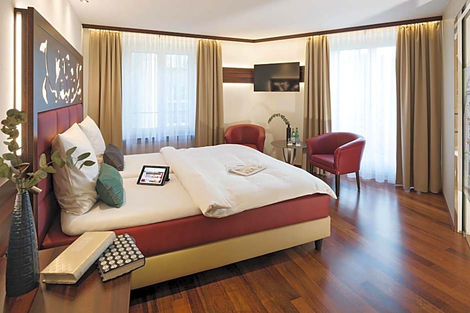 In addition to the excellent service and affordable rates, Hotel Scheuble offers a range of comfortable and stylish rooms to suit every traveler's needs. Whether you're traveling alone or with a partner, the hotel has a variety of options to choose from. For those looking for a bit more space and luxury, the Junior Suite is the perfect choice. With a spacious 248 square feet of area, a queen-size bed, and the ability to accommodate two adults and one child, it provides a comfortable and relaxing stay.