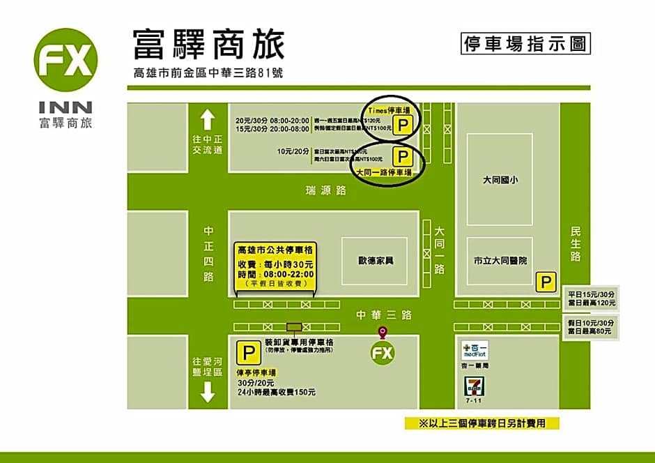 FX INN Kaohsiung Zhonghua Road Branch is a 4-star hotel in Kaohsiung, Taiwan, located about 1,3mi from the city center. The address is No. 81, Zhonghua 3rd Rd, and breakfast is offered on site. With 1,617 reviews, rates start from $35.