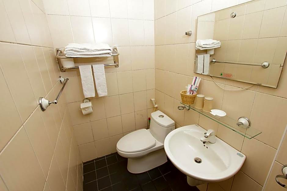 This twin room has air conditioning, tile/marble flooring and electric kettle.