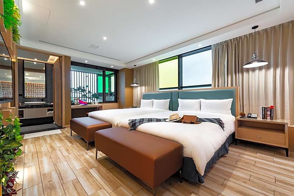 At the Norway Forest Motel - Wen Chuang Branch, rooms include the Luxury Garage Room, offering a double occupancy with a queen size bed and a room size of 1206 sqft. Smoking is not allowed in this room.