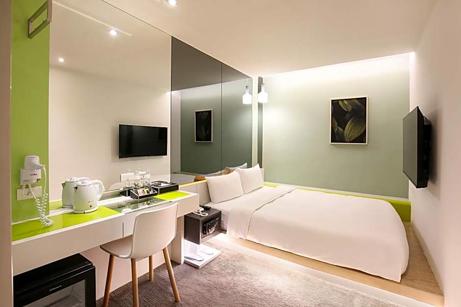 Large air-conditioned room features a 42-inch flat-screen TV, fridge and free internet. Free snacks, bottled water and tea packets are also provided.