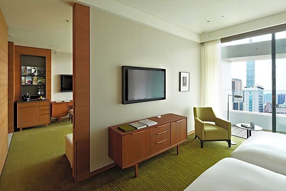 Facing Yangming Mountain view or Songshan Cultural and Creative Park, the air-conditioned rooms are fitted with carpeted floors, a flat-screen cable TV and a coffee machine. Large private bathrooms offer a sunken bathtub, fluffy bathrobes and free bath amenities. Luxurious and spacious room features a separate living area with a sofa.