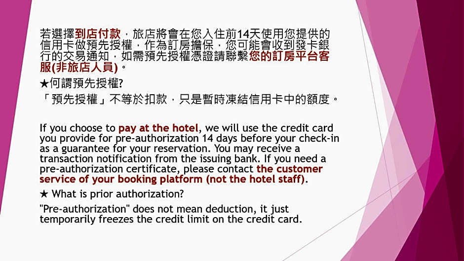 No matter the room type chosen, guests can expect a smoke-free environment, ensuring a clean and fresh atmosphere throughout their stay. Morwing Hotel Fuzhong's commitment to providing a range of accommodations, combined with its convenient payment options, makes it an excellent choice for travelers looking for a hassle-free and comfortable place to stay during their visit to Taipei. With this diverse range of room options, the hotel ensures that each guest can find the perfect space for their needs, enhancing their overall travel experience.