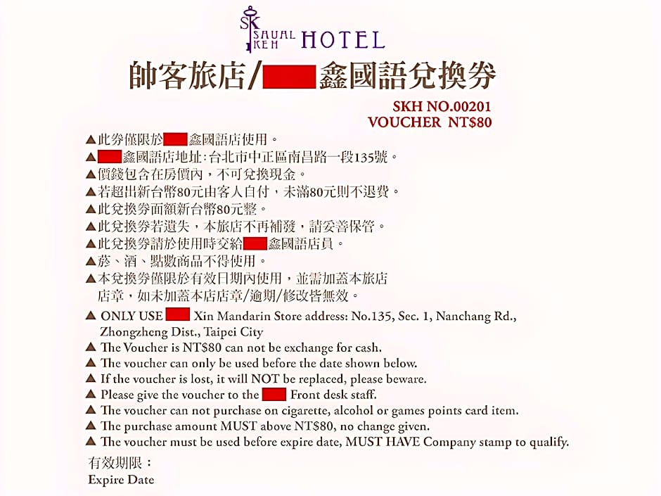 Saual Keh Hotel is a 3-star retreat in Taipei, Taiwan, located about 1,4mi from the city center. The address is No.2, 90th Lane, Sec. 1, Roosevelt Rd., offering convenient access to downtown and the surrounding sights.