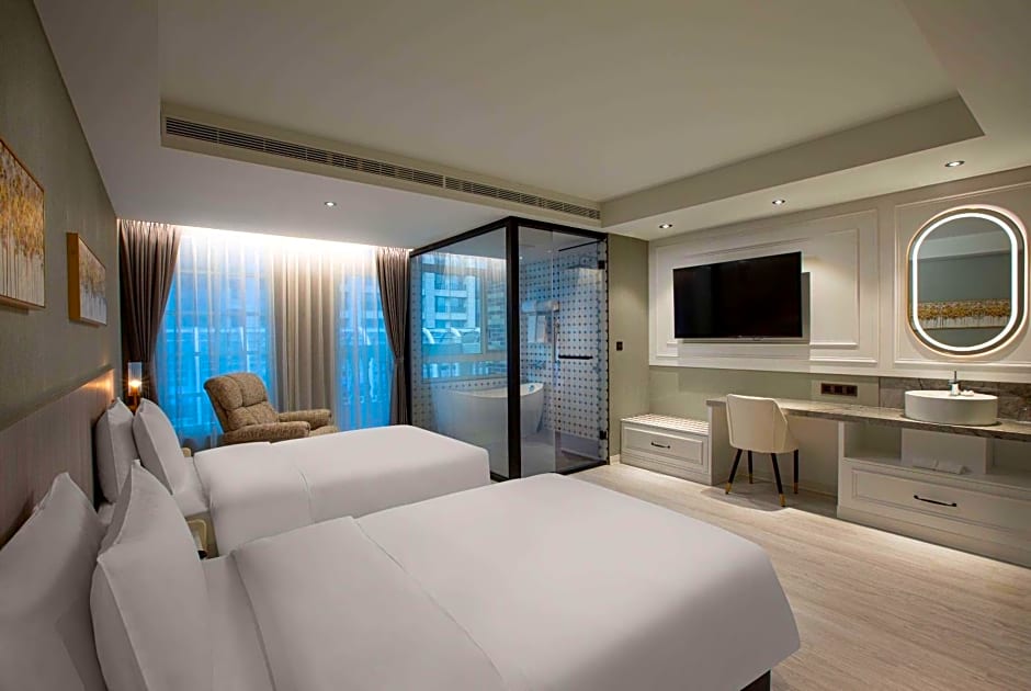 TRYP by Wyndham New Taipei Linkou 新北林口爵怡溫德姆酒店機場捷運MRTA9林口站 offers a variety of room types to cater to different preferences and group sizes. The hotel provides Standard Rooms with city views, perfect for solo travelers or couples looking for a cozy stay. For those seeking a bit more space and luxury, the hotel also offers Superior Rooms with additional amenities and modern décor. Families or larger groups can opt for the Family Rooms, providing ample space and comfort for a relaxing stay in Taoyuan City.