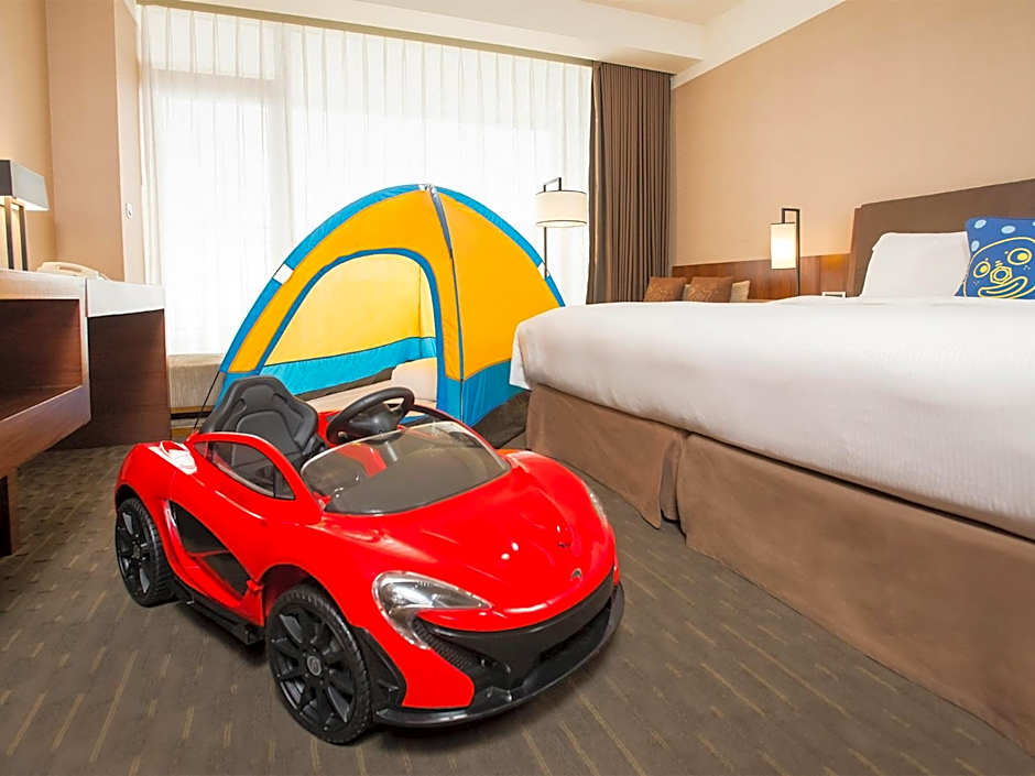 Located on the Fantasy Castle Floor, this double room has air conditioning, bathrobe and mini-bar. Extras feature a children tent, children electric car, children toothbrush and toothpaste.
