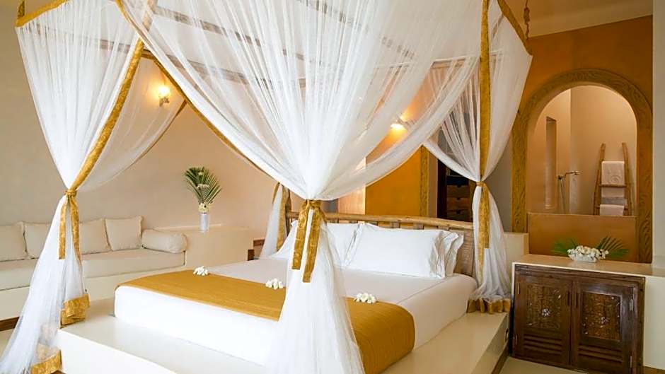 Gold Zanzibar Beach House & Spa is a 5-star resort perched along Kendwa Mchangani Beach in Tanzania, just 1,5mi from the city center. Address: P.O. Box 1543. The minimum price starts from $514 per night, and breakfast is offered on site.