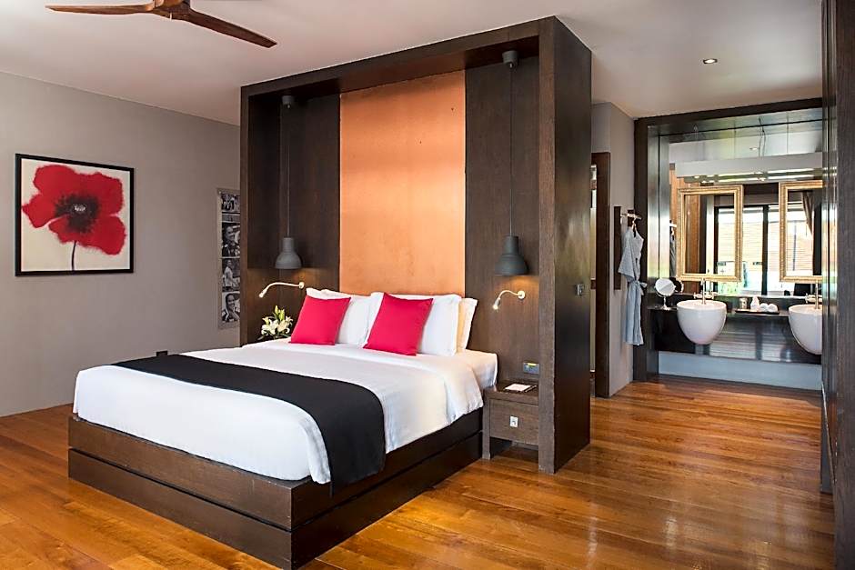 Two Bedroom Pool Residence is 2368 square feet and includes either a king-size bed 150-183 width or a queen-size bed 150-154 width.