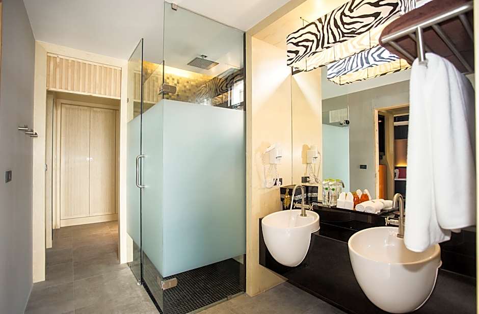 This room features a jetted bathtub in the living area with daybed and high ceiling fan setting at the balcony. All units are located in its main resort featuring both of lower and upper floor of low-rise building. The Deluxe Balcony Suite provides 44 sqm. with a king-size bed or twin beds as Hollywood style. The bathroom comes with separate standing shower and toilet. Ideal design with the state of the art facilities in each luxury room provides you unparalleled luxury experience. All rooms are air conditioned with a king size bed, LCD TV, desk, hair dryer, telephone, tea/coffee facilities, in-room safe and wireless internet access.