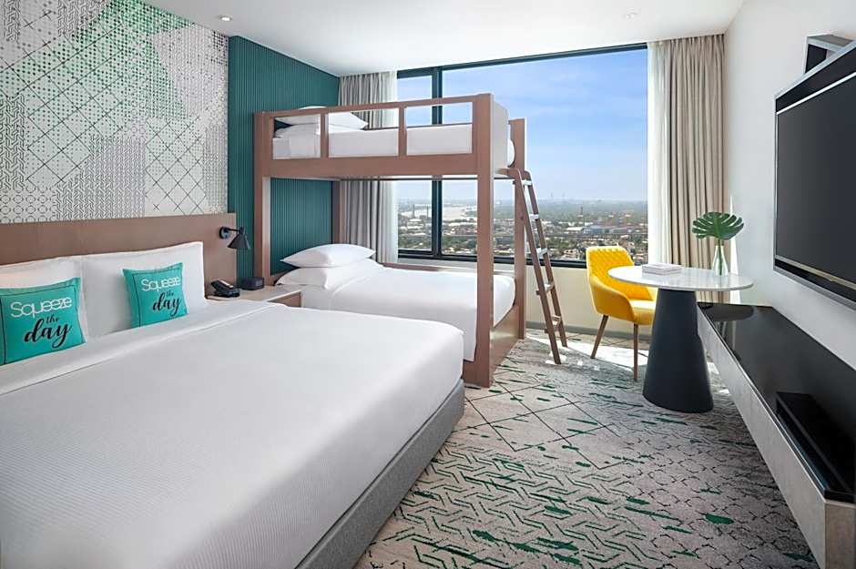 FAMILY SKYLINE is 280 square feet and includes either a king-size bed 150-183 width or bunk beds.