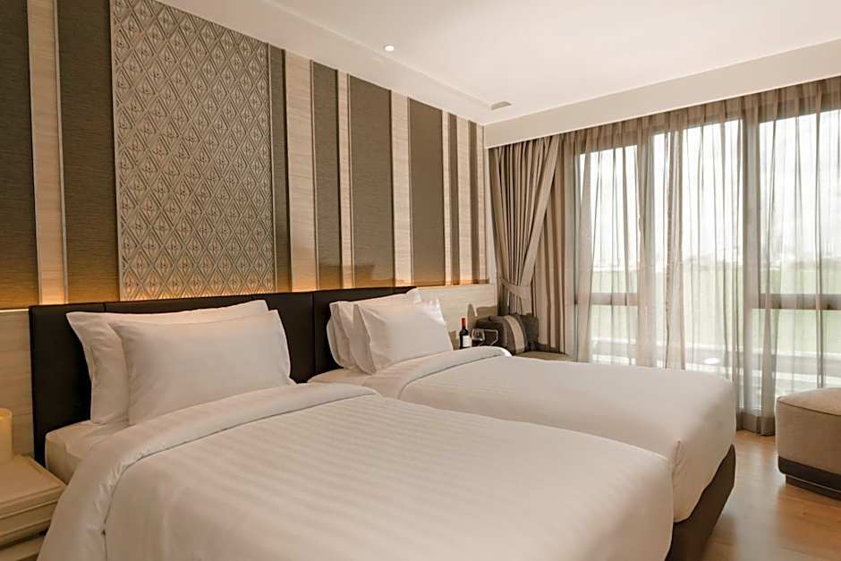 The hotel offers various types of rooms including Deluxe Double Rooms, Premier Double Rooms, and Deluxe Twin Rooms. All rooms have a room size of 269 sqft or 323 sqft and can accommodate 2 adults and 1 child. Smoking is not allowed in any of the rooms. The beds in the rooms are either 1 King size bed or 2 Twin beds.