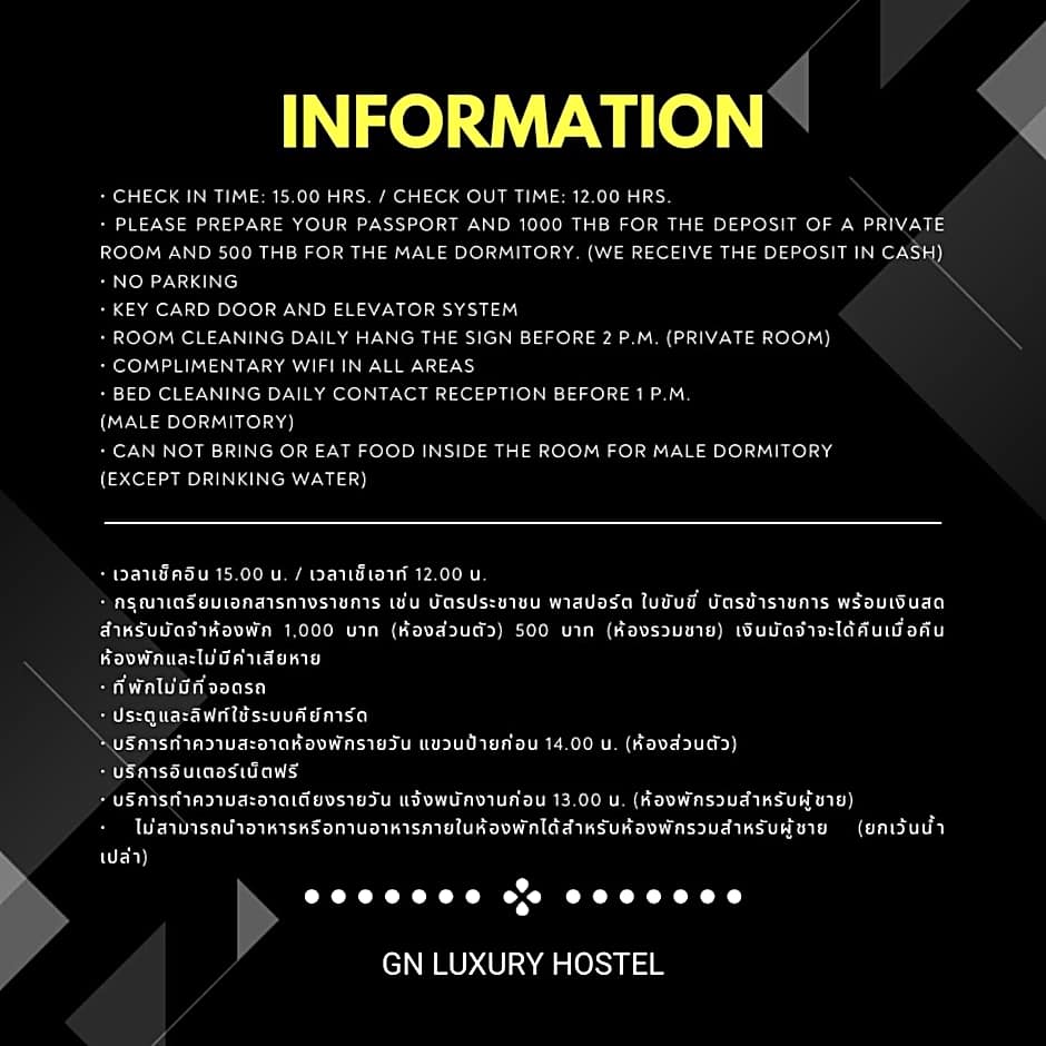 GN Luxury Hostel is a 2-star stay in Bangkok, Thailand, perched on Ratchaprarop Road about 2,8mi from the city center. An adults-only vibe welcomes travelers seeking a simple, sociable base in the capital.