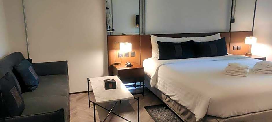 Bed configurations vary by room type, from a Standard Queen and a two-twin setup to King-sized sleepers in Deluxe, Superior, and most Junior Suites. The Junior Suite line includes variations with either a King or a Double bed, while the larger 538 sqft Junior Suite also carries a King bed. The Executive Suite combines generous space (753 sqft) with a King bed to create a relaxing hub for both downtime and productivity.