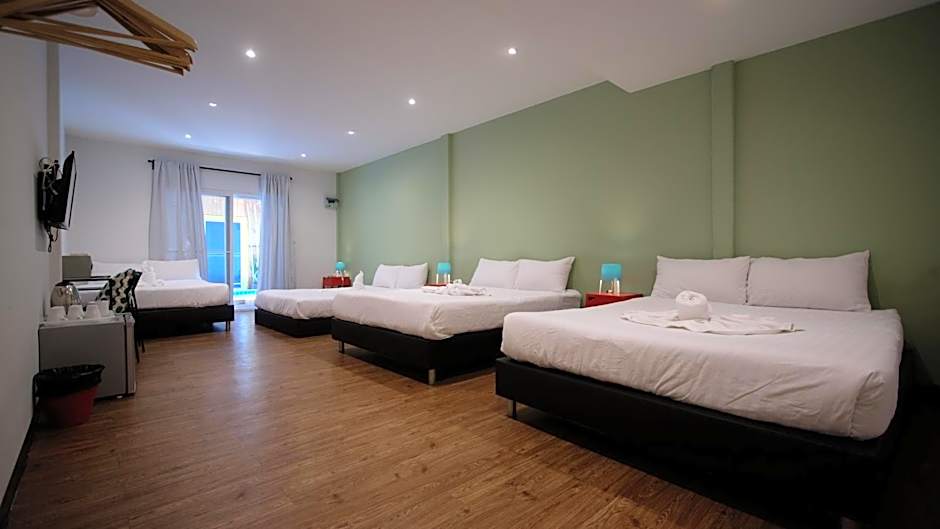 Rooms at the Resort V MRT Huai Khwang include Single Rooms, Double Rooms, Triple Rooms, Quadruple Rooms, and Family Rooms. Smoking is not allowed in any room type. Bed sizes vary from Twin to Queen while room sizes range between 194 sqft to 431 sqft. Occupancy accommodates from 1 to 8 adults with the addition of children as well.